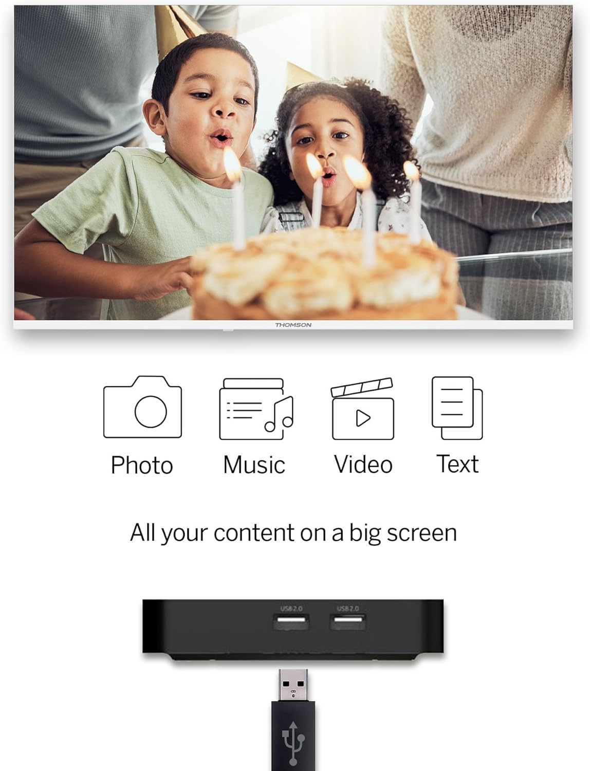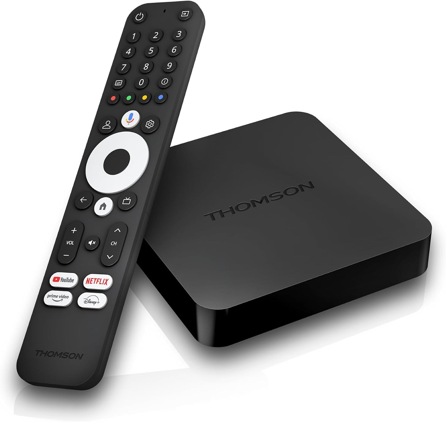 Discover a world of entertainment and flexibility with the Thomson Streaming Box 240G. The 4K Ultra HD resolution delivers breathtakingly sharp and vivid images. The box is not just a streaming device, but your new multimedia hub that takes your viewing experience to the next level. The Thomson Streaming Box allows you to turn your TV into a Smart TV with Google TV™ (Android™12) operating system in a snap. Enjoy access to a huge selection of apps, including popular services such as Netflix, Disney+, Prime Video and YouTube. Your favorite shows, documentaries, music, sporting events and much more are now just a click away. Google TV™ combines content from different streaming services on the home screen, so you don’t have to jump from app to app to find preferred movies. The versatile connection options offer you even more flexibility. You can connect your soundbar, pair your Bluetooth gamepad or enjoy videos and photos from your external USB hard drive. Choose between Wi-Fi or Ethernet LAN for convenient network access. A special highlight of the Thomson Streaming Box 240G is the ergonomic Bluetooth remote control with Google Assistant. Use your voice to find YouTube videos, search for the latest blockbusters or ask Google for news and information from the internet. Open your favorite apps with just one click on the direct selection buttons. Create multiple user profiles with personalized content on the same device and switch between them by clicking the profile button. And with Chromecast built-in, you can cast content from your smartphone to your TV screen.